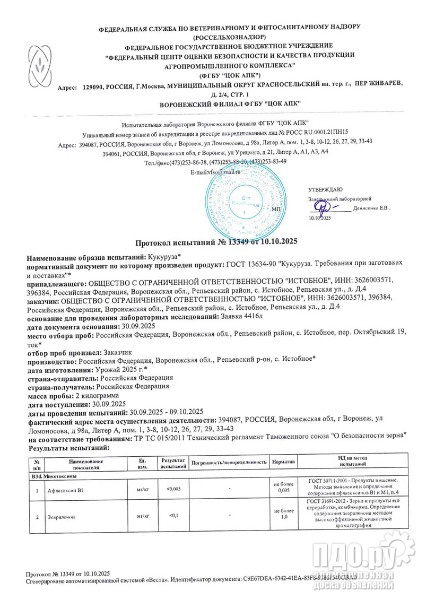 Кукуруза ГОСТ без микотоксинов от производителя