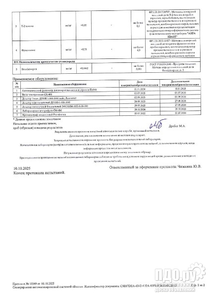 Микотоксины не обнаружены. Протоколы имеются